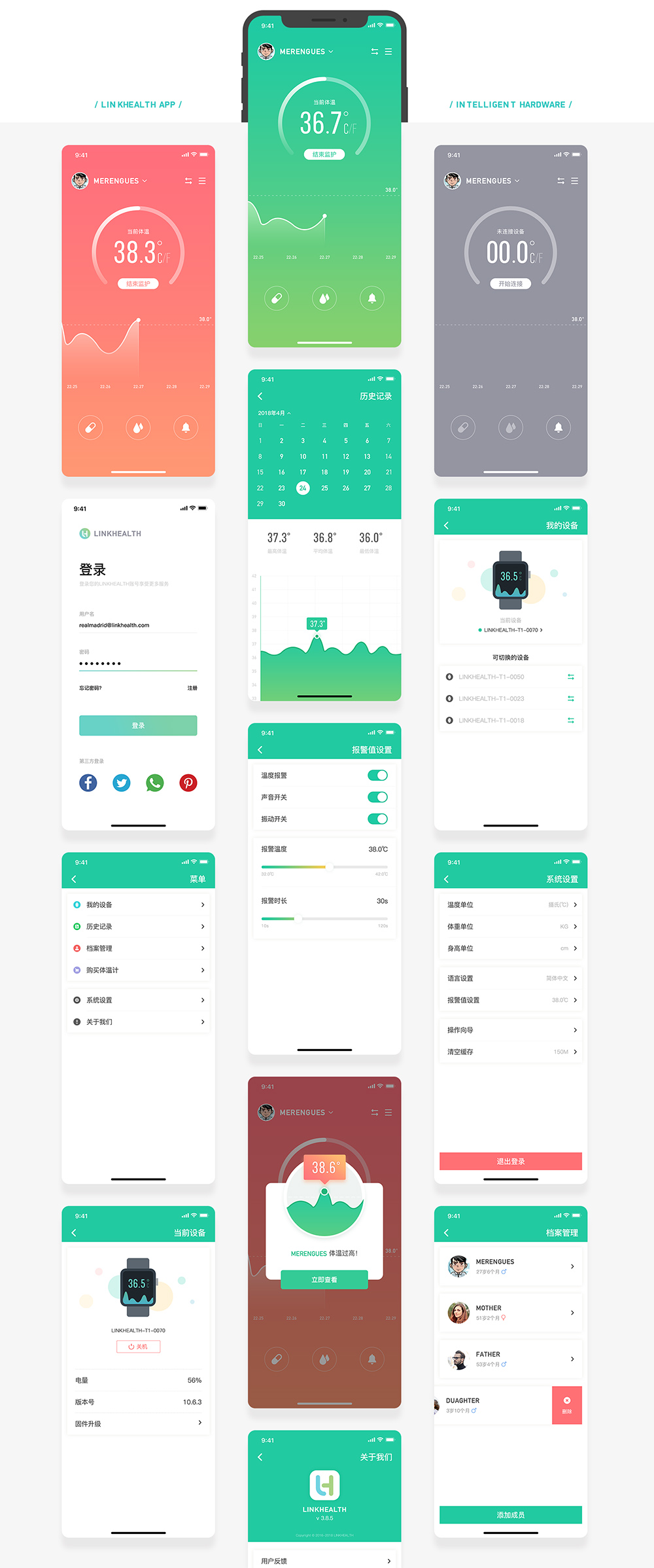 可添加最多5个用户档案,包括其身高体重等健康数据,为后期的的医疗服务提供数据接口。